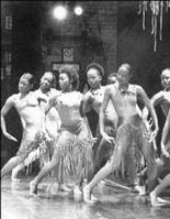 New generation of dancers of the NDTC caught in performance in New York. The work is 'Spirits at a Gathering', choreographed by Rex Nettleford and dressed by designer Aelene Richards.