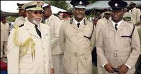 (From left) Chief of Staff of the Jamaica Defence Force Rear Admiral Hardley Lewin; Commissioner of Police Lucius Thomas and Deputy Superintendent of Police Danny Graham, during a graduation cermony for 101 soldiers at the Moneague Training Camp last year.- CONTRIBUTED